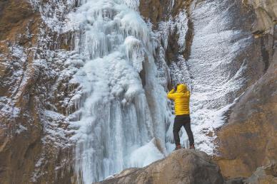 12月7日,迎来大雪节气。受低温天气影响,在信都区西部仙界山周边出现冰挂景观,一簇簇晶莹剔透、形态各异的美丽冰挂“盛开”在山峰之间,煞是好看。 (邢台日报社全媒体记者 霍红军 陈雷 摄)