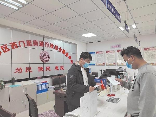 商户在西门里街道行政综合服务中心为自家超市办理门头牌匾手续。 张耀乾摄