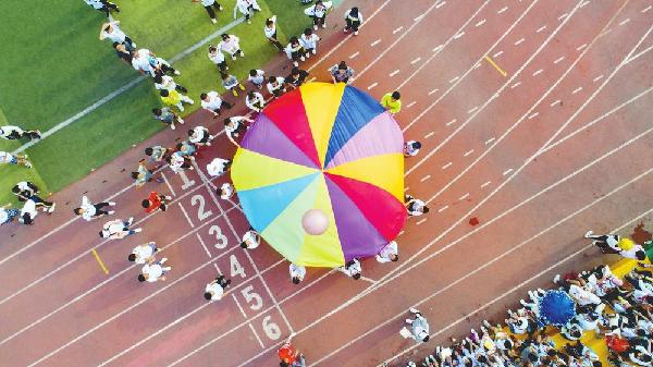 马路街小学常年举办全员参与的师生趣味运动会(资料图片)。 董利瑞摄