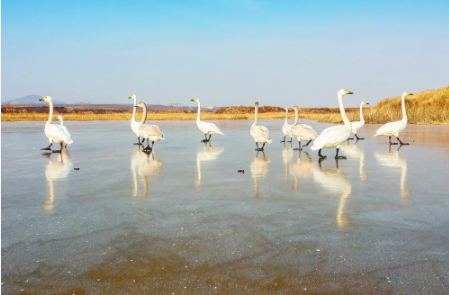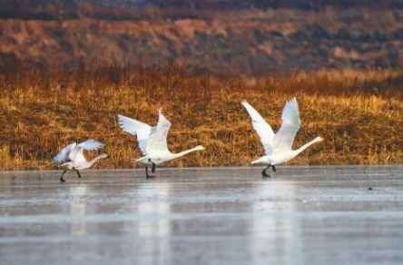12月25日,在我市信都区和内丘县交界的白马河湿地,十只迁徙的天鹅暂短停留。天鹅在这里嬉戏,它们时而翩翩起舞,时而引吭高歌,向人们展示着人与自然和谐共生之美,甚为壮观。