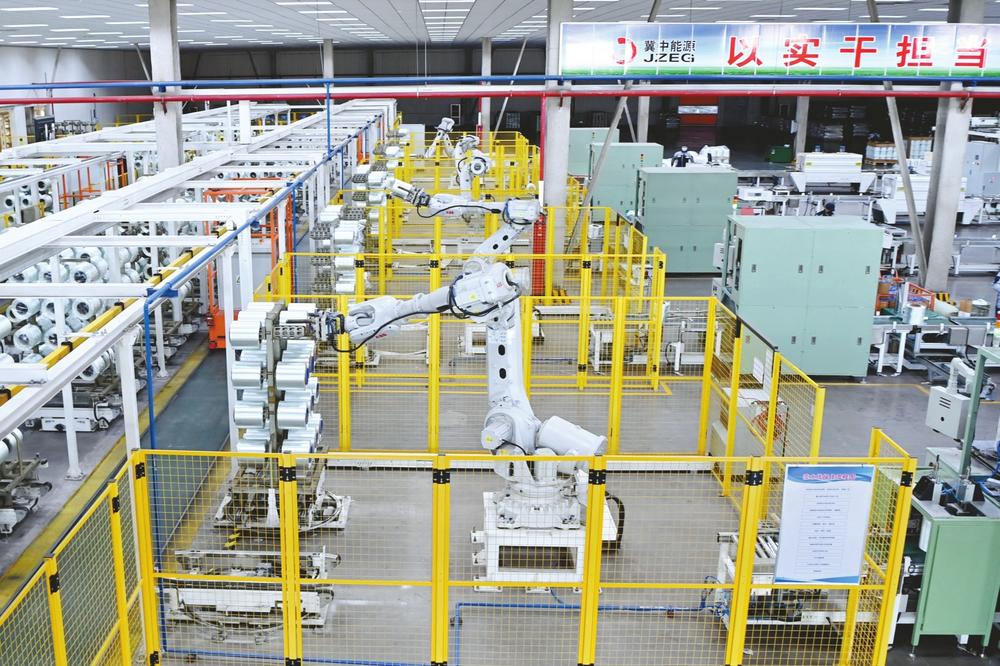 近日,在河北冀中新材料有限公司玻璃纤维生产车间,智能化机械手正在有条不紊高效运转。
