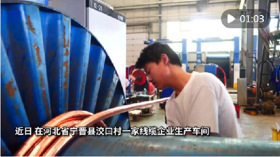 近日,在河北省宁晋县洨口村一家线缆企业生产车间,机器轰鸣,一根根线缆随着生产线的高速运转,走完生产线全流程,整装待发。