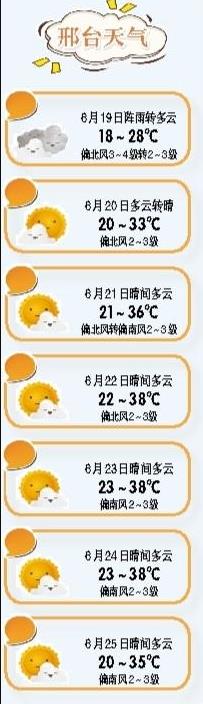 从市气象台昨天发布的最新预报来看,今天白天,我市降雨天气继续。本周中后期,将再迎持续高温天气,最高气温多在37~38℃。周三、周四是今年中考的日子,考生和家长还是要注意防暑防晒。