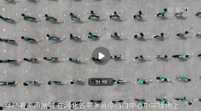 一招一式,虎虎生威。伴随着声声呐喊,在河北省平乡县停西口中心小学操场上,同学们集体练习梅花拳课间操。