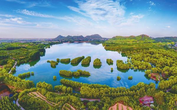 信都区皇寺镇东羊卧村西的羊卧湾水库,也就是人们口中常说的八一水库,近日,记者驱车前往,只见绿水如镜映照远山,水鸟嬉闹,沿岸杨柳郁郁葱葱。向东望去,远处的马鞍山、馍馍山与羊卧湾水库遥相呼应,山峰倒影湖面,在水天一色的衬托下,俨然一幅空灵淡雅的水墨画,成为我市西北部一道靓丽风景。(邢台新闻传媒中心记者 霍红军 摄)