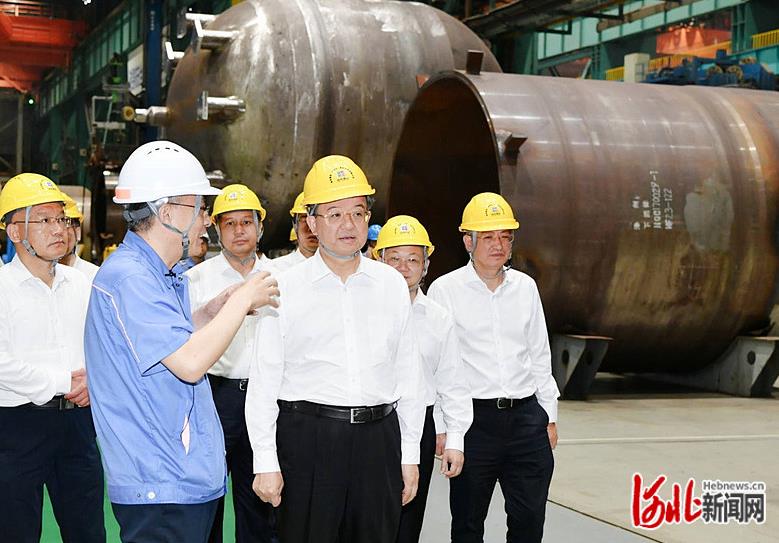 7月22日,省委书记、省人大常委会主任倪岳峰在哈电集团(秦皇岛)重型装备有限公司调研。河北日报记者赵海江摄