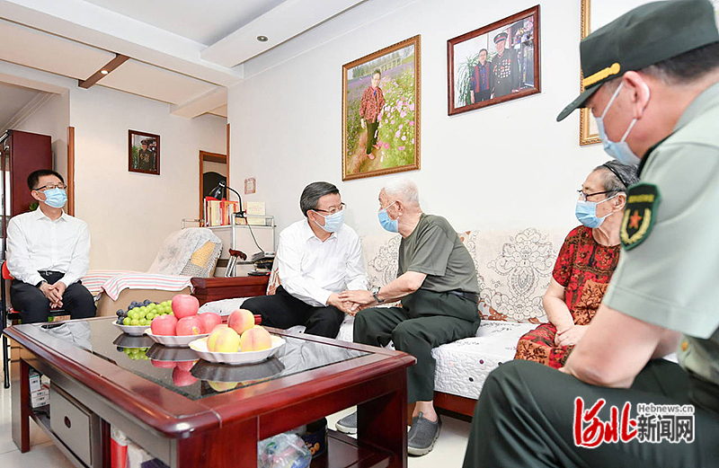 7月28日,省委书记、省军区党委第一书记倪岳峰到家中慰问曾参加过解放战争、抗美援朝战争的89岁离退休干部林惠志。 河北日报记者赵海江摄
