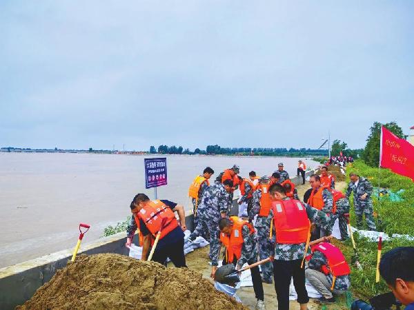 7月31日,南澧河南和区段水位迅速上涨,防汛形势严峻。接邢台军分区指令,南和区人武部立即启动应急预 案,紧急部署并集结民兵约500人,连续奋战加固堤坝,全力保障群众安全。 刘立国摄