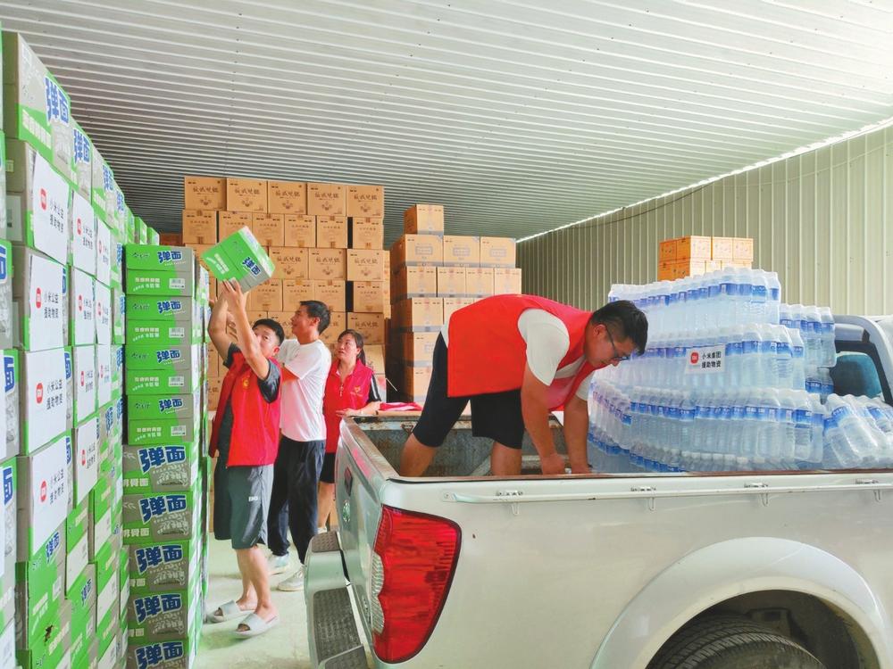 临城县新时代文明实践中心及所、站密切联系群众,积极组织志愿者开展邻里互助、清淤除障、消毒义诊等灾后重建志愿服务活动。图为该县新时代文明实践中心志愿者将救灾物资装车运往山区。李娟摄