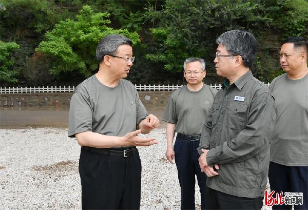 8月6日,省委书记、省人大常委会主任倪岳峰在石家庄市检查防汛抢险救灾工作。这是倪岳峰在石太铁路货运线井陉县段,察看基础设施受损情况,研究部署恢复重建工作。河北日报记者郭昭摄
