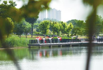 绿树成荫、碧水荡漾……昨日,健身爱好者在市园博园浪漫湖滨景观带舞秧歌健身,乐享太行泉城无限风光。近年来,我市统筹推进绿色发展,深入打好蓝天、碧水、净土保卫战,全市生态环境质量持续提升,人民群众获得感、幸福感、安全感不断增强。