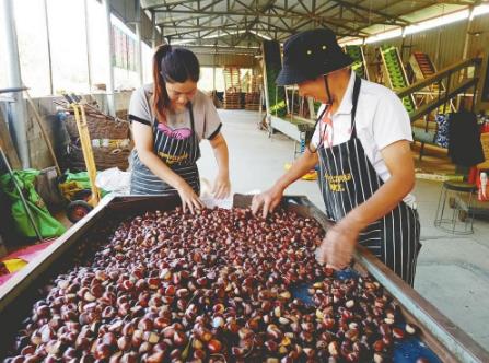 图为某商行员工正在采收、分拣板栗。(邢台新闻传媒中心记者叶晓强通讯员 任付珍摄)