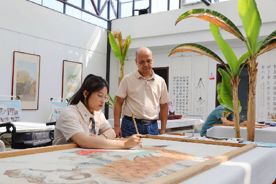 “上色时,要注意色彩搭配,让画面更有意境……”在指导老师刘振波的帮助下,学员李娜的花鸟图变得更生动。李娜告诉记者:“这里有很多同伴一起画画,氛围浓厚。特别是有专业的老师现场指导,我每次来都会有很大的提升。”