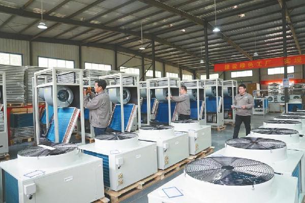 近日,河北兰瑞电器有限公司工人正在生产工业制冷设备。