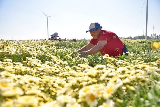 近年来,河北省临西县在推进产业富民过程中,根据当地土壤、气候特点,因地制宜引导农民规模化发展菊花种植,延长菊花种植产业链条,把菊花加工成茶饮、药材等高附加值产品,带动当地农户增收致富。