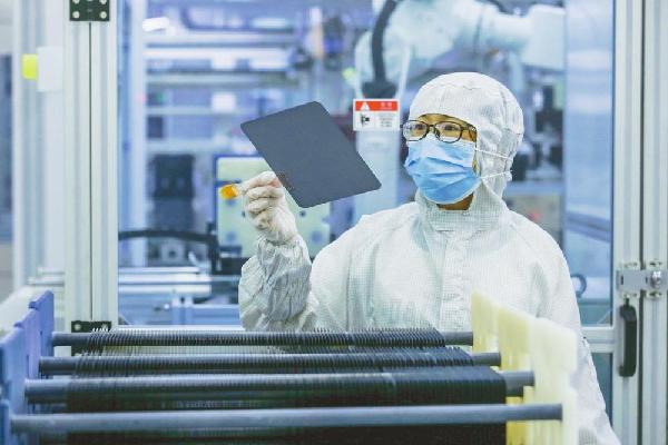 晶澳太阳能科技股份有限公司自动化车间正在生产。 李义厚摄