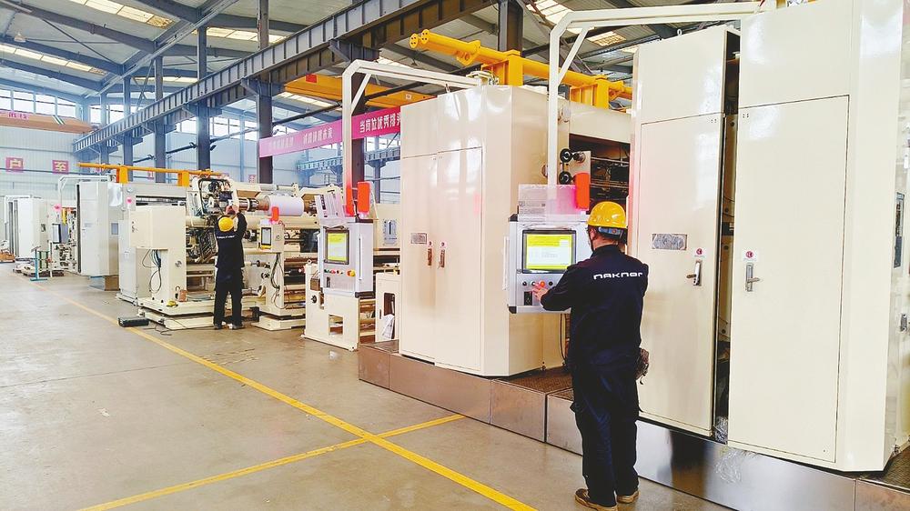 在今年投用的新车间一角,一字排列着3台辊压机。“这是我们研发的一款新产品。”李志刚说,伴随公司产品的迭代,辊压分切一体机宽幅突破1500毫米,最高稳定运行速度提升至140米/分,最大承载料卷重量提升至2500公斤。