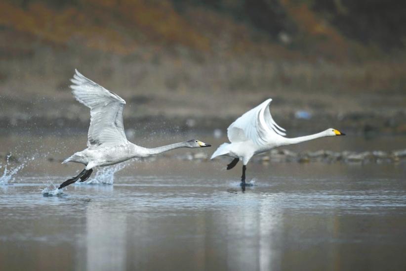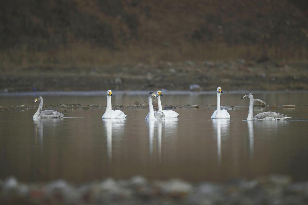 12月4日,在信都区南青山村村北白马河,天鹅在水中嬉戏、觅食,为冬日的白马河增添了盎然生机。近年来,随着白马河生态环境的持续改善,每年冬季都会吸引各类候鸟来这里栖息。 (邢台新闻传媒中心记者 霍红军 摄)