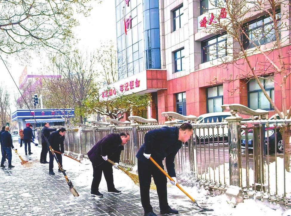 市审计局组织机关干部职工在团结西大街开展铲雪破冰志愿服务活动。韩文洲、吕文豪、李鑫摄