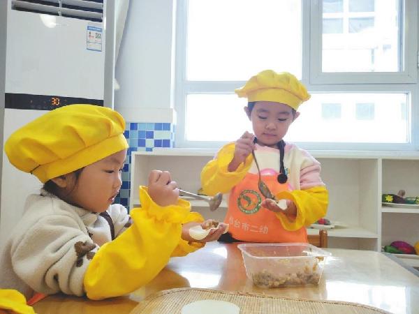 活动中,网络志愿者通过“识冬至”“趣冬至”“享冬至”等环节,向孩子们分享了冬至的气候特征、节日的由来等知识。他们用生动活泼的方式,让孩子们了解到冬至的独特意义和历史渊源。图为孩子们在老师的指导下,认真学习如何包饺子。