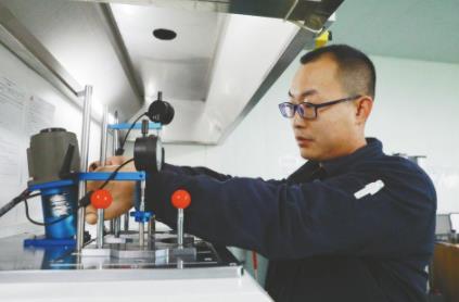 华密新材公司实验室内,工人正在检测树脂材料的耐热性。 宋杰、霍金涛摄