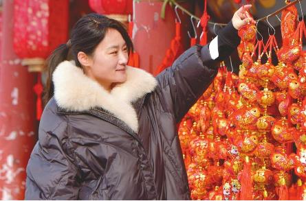 1月19日,市民在襄都区仿古街选购春节饰品。近日,襄都区仿古街上,春联、红灯笼等春节饰品之类的年货抢“鲜”上市,喜迎新春佳节。本报记者 叶晓强摄
