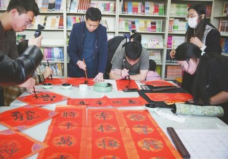 近日,邢台医专组织开展了“翰墨凝香、辰龙送福”送春联活动,师生饱蘸浓墨,将诚挚的祝 福投诸笔端,用心书写红彤彤的春联和“福”字,送给一年来辛勤付出的教职工。王烈摄