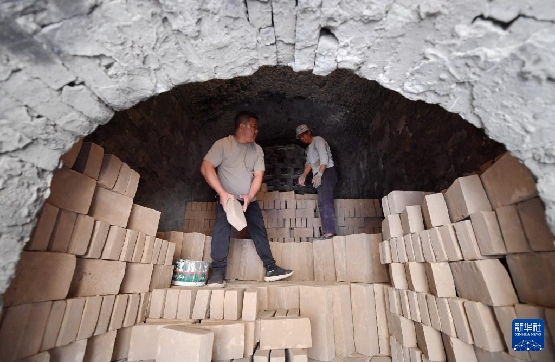 5月15日,陈建磊在查看砖坯质量。 新华社记者王晓摄
