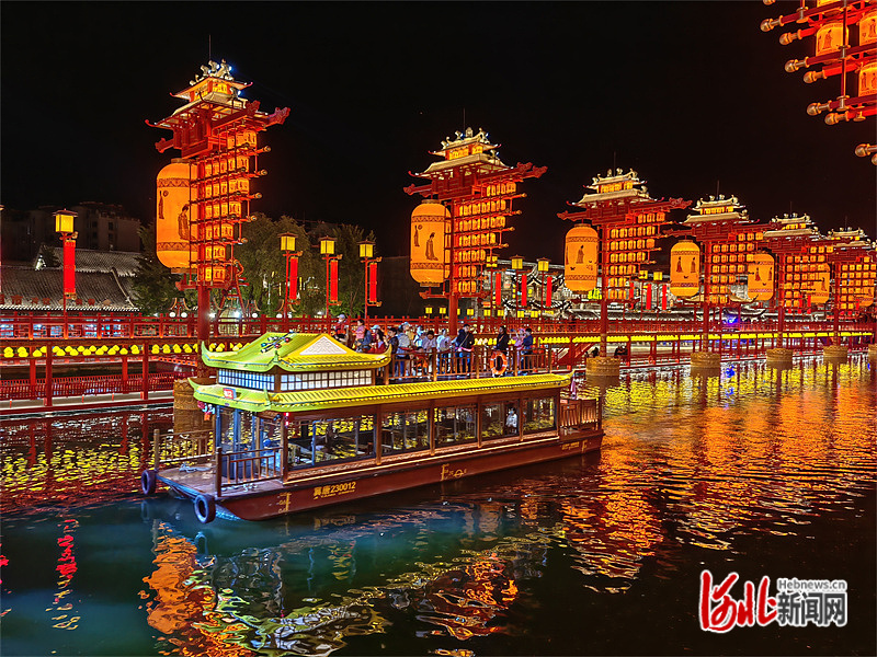 5月11日,游客乘船夜游唐山河头老街。河北日报记者 马朝丽摄