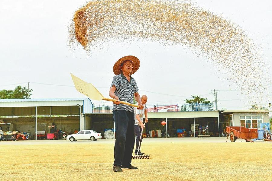 日前,信都区3.95万亩小麦收割工作接近尾声,农户抢抓晴好天气,对已收获的小麦进行晾晒,确保颗粒归仓。