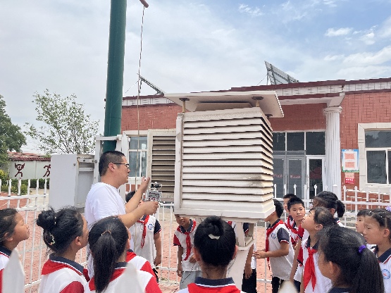 近日,达二小学科学老师李鹏带领着校园科普小队成员们来到校园气象观测站,开展气象知识研学活动。