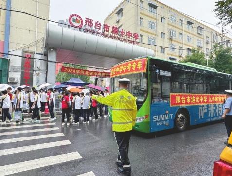 邢台公交加大途经各个考点的公交车次密度,对雨天行车注意事项进行专门部署,要求驾驶员务必谨慎驾驶、减速慢行。该公司还为多所学校师生提供专车接送服务,全力保障中考学子准时、安全到达考场。