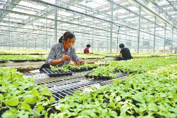 日前,在南和区贾宋镇一家现代农业企业,工人正在管理蔬菜秧苗。