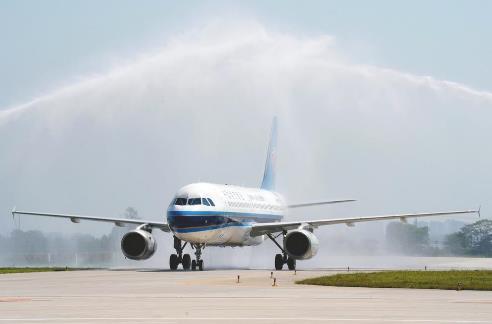本报讯“看,飞机来了!”7月18日10时,随着一声激动的呼喊,所有人的目光不约而同投向了天空。一架从广州白云机场直飞而来的空客A320穿越云层,平稳降落在邢台褡裢机场的跑道上。