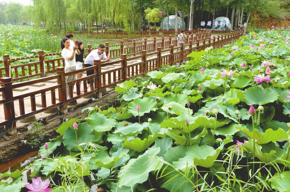近日,在信都区羊范镇北唐村,娇艳的荷花竞相开放,吸引不少市民前来赏花休闲。 近年来,信都区持续和美丽乡村建设,因村制宜,突出特色,推进乡村旅游产业发展。本报记者 邱洪生摄