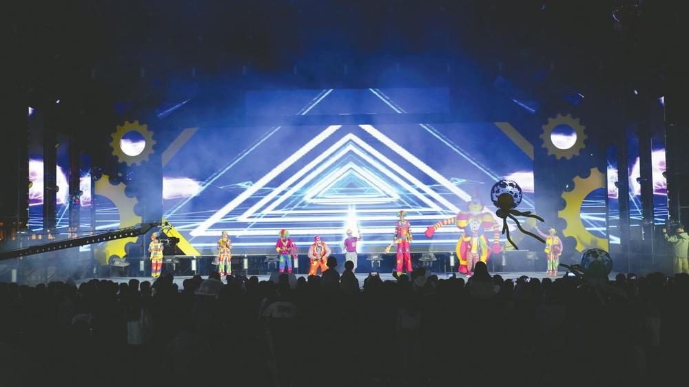 10月5日晚,京南后海商业街灯火辉煌、热闹非凡,一场别开生面的小丑表演正在精彩上演,表演结束后活泼可爱的小丑们穿梭在街道和游客互动,为这条繁华的商业街增添了欢乐的节日气氛。 本报记者韩文洲通讯员杨卓摄