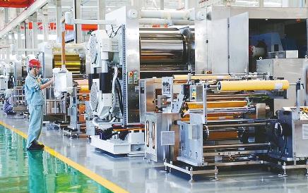 近日,工人在海裕锂能电池设备有限公司调试电池极片辊压机。