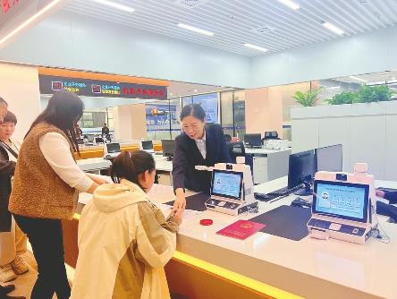 宁晋县政务服务中心不动产服务区工作人员为企业办理相关业务。 范素素摄