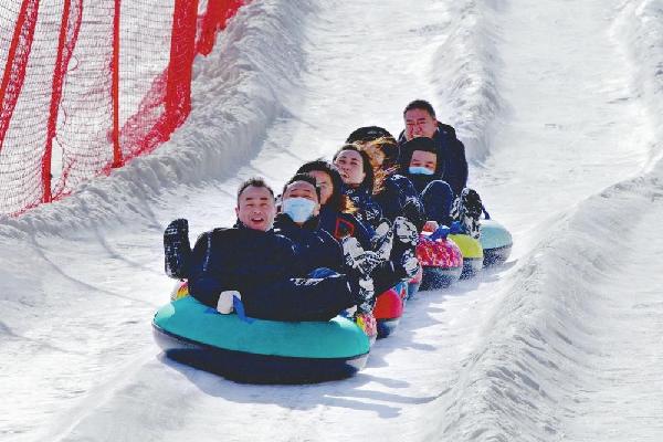三九寒冬,游客在信都区景区内体验雪圈、滑雪等趣味冰雪项目,感受冰雪运动的魅力和乐趣。本报记者 黄涛 通讯员 王明成摄