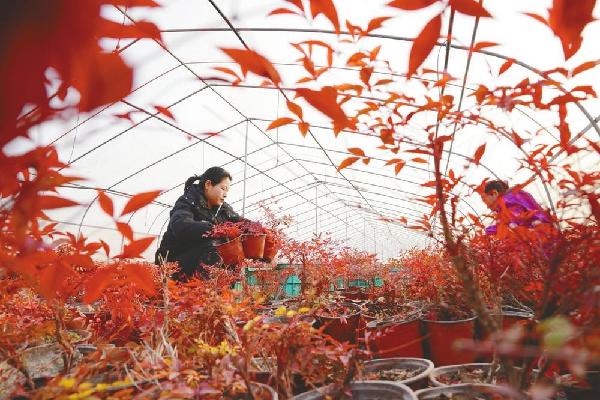 日前,内丘县一家农业公司员工在大棚里管护南天竹幼苗。早春时节,该公司发挥科研优势,抢抓农时,积极开展蓝莓、红薯、南天竹等育苗工作。本报记者 韩文洲通讯员 刘继东摄