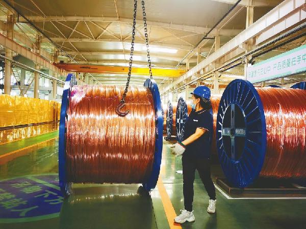 6月16日,在宁晋县贾家口镇黄儿营西村工业园区,亚星线缆集团有限公司的海底电缆生产车间内一派繁忙景象。自动化生产线上,铜丝经过拉丝、绞线、绝缘等多道精密工序,最终被整齐缠绕在轴盘上,等待发往全国各地。