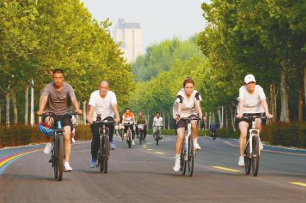本报讯(记者丁邵一)8月3日一早,在七里河体育公园南侧,不少骑行爱好者蹬着各式各样的自行车,沿着河北岸的健身绿道结伴而行。