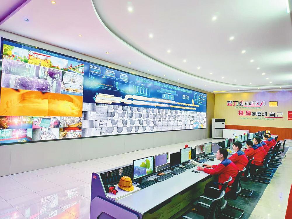 10月7日,在沙河经济开发区河北德金玻璃有限公司大数据指挥中心,技术人员坚守岗位,实时监测数据和生产线监控画面,确保生产安全有序。