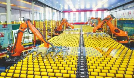 河北德金玻璃有限公司生产车间,机械手正在搬运玻璃原片。资料图片