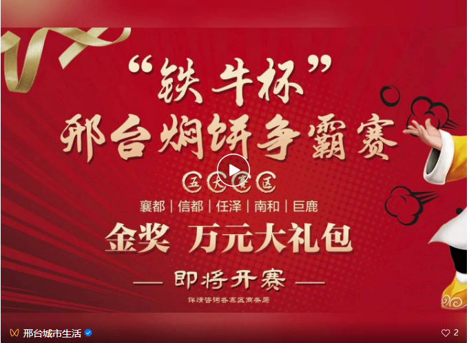 邢台焖饼作为冀南地区的传统特色美食,历史悠久、风味独特,尤其以巨鹿县焖饼为代表,被誉为“焖饼的发源地”。“铁牛杯”邢台焖饼争霸赛旨在通过赛事展现焖饼制作技艺,传承地方饮食文化,激活消费市场。