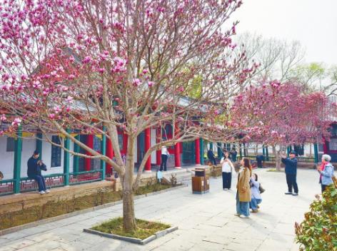 近日,我市西部太行山区野山桃花竞相绽放,漫山遍野的桃花,犹如白雪洒落山间,吸引了众多游客前来观赏游玩。图为3月28日,游客在信都区九龙峡景区赏花游玩。